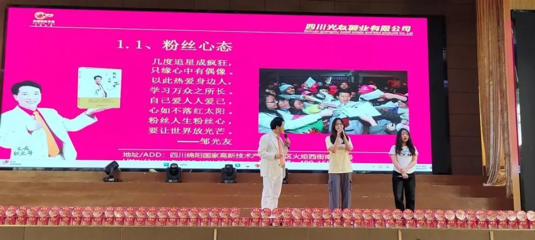 鄒光友董事長以粉絲如何讓人生更精彩?怎樣打造自己的金飯碗?從成功心態(tài)萬事成、辭官下海賣紅薯、管理模式共分享、人生精彩粉絲路四大板塊講述自己32年來,用一根紅薯加500元?jiǎng)?chuàng)立并發(fā)展光友薯業(yè)的傳奇故事。