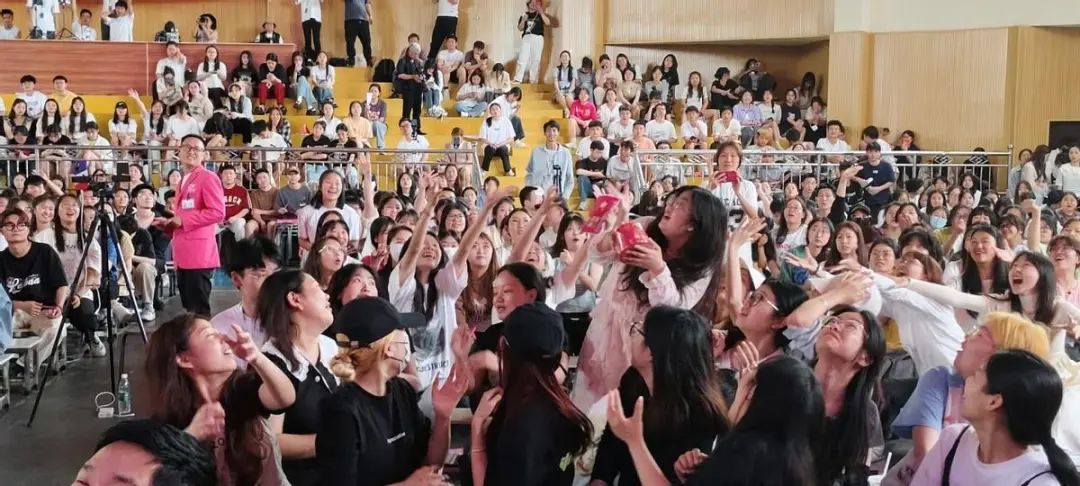 (方便粉絲方便米粉發(fā)明人鄒光友高校巡回演講現(xiàn)場共跳粉絲舞)