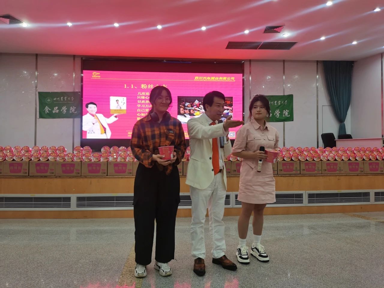 4月25日,陽光曜靈,和風容與。正是麗日當空時,光友薯業(yè)走進了綠意盎然、洋溢著青春活力的四川農業(yè)大學食品學院,開展了校企深化合作交流座談會,組織考察校區(qū)各食堂、超市,中國食品產教融合共同體副理事長、中國食品科學技術學會理事、方便粉絲方便米粉發(fā)明人、方便粉絲專家、教授級高工、新中國成立60年“三農”模范人物、光友薯業(yè)創(chuàng)始人、光友薯業(yè)董事長鄒光友鄒光友成功舉行了全國高校第169場創(chuàng)業(yè)勵志演講。