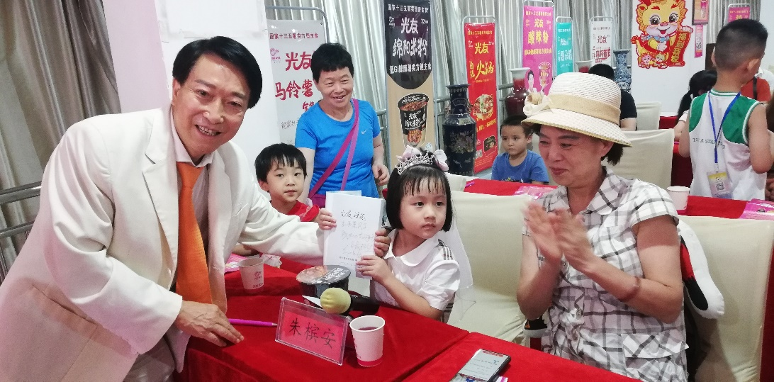 活動前預(yù)熱環(huán)節(jié),一段活力四射的光友粉絲舞視頻讓現(xiàn)場氣氛瞬間升溫。隨后,方便粉絲方便米粉發(fā)明人、光友薯業(yè)集團(tuán)董事長鄒光友發(fā)表熱情洋溢的歡迎辭,并深情分享《從小立志成大業(yè) 戰(zhàn)勝不可戰(zhàn)勝的困難》的感言,鼓勵小記者們勇于面對挑戰(zhàn)面對困難,追求夢想。在互動環(huán)節(jié),小記者們積極提問,鄒董事長一一耐心解答,并親手為提問的小記者們贈送《光友詩選》,每本書上都附有鄒董事長親筆簽名及溫馨寄語,傳遞著對下一代的殷切期望。