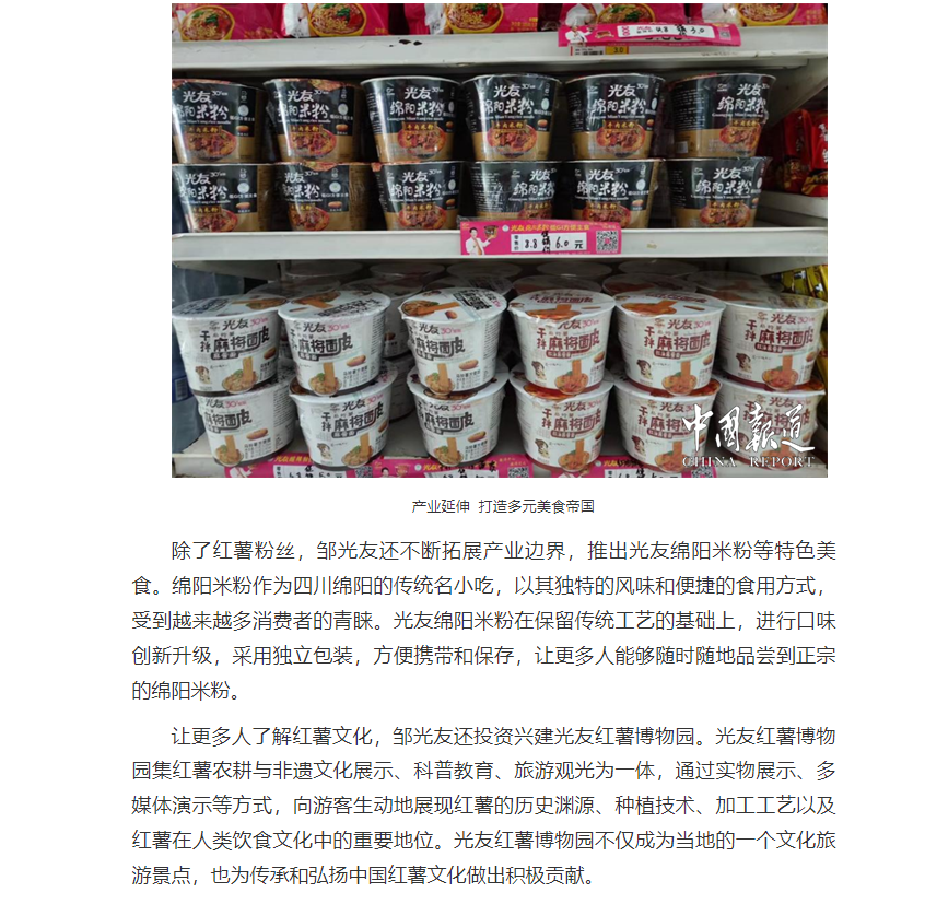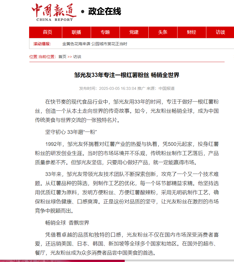 轉(zhuǎn)載中國(guó)報(bào)道網(wǎng)——鄒光友33年專(zhuān)注一根紅薯粉絲 暢銷(xiāo)全世界