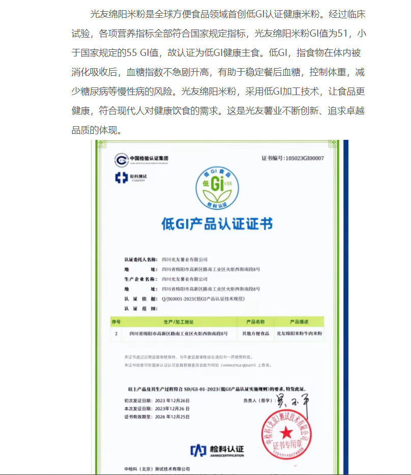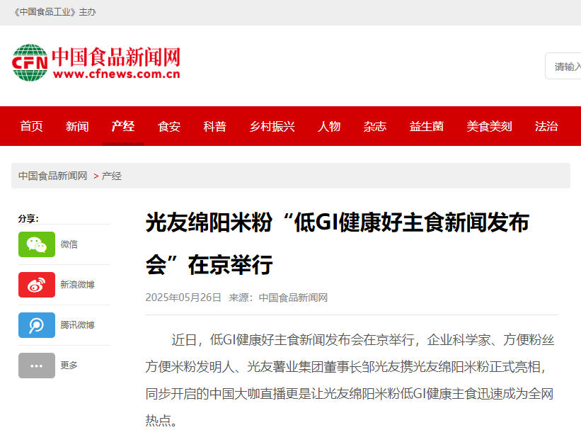轉(zhuǎn)載中國食品新聞網(wǎng)——光友綿陽米粉“低GI健康好主食新聞發(fā)布會(huì)”在京舉行